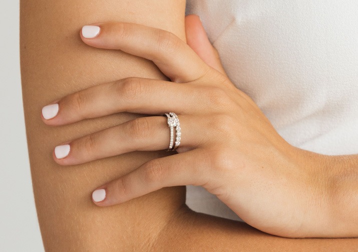 Rewind to ancient times, when people believed there was a single vein that ran straight from the ring finger to the heart. This supposed vein was called the Vena Amoris, which literally translates to “vein of love.” As inaccurate as this belief was anatomically, we admit it’s a pretty charming explanation for why the engagement ring and wedding ring go on the finger it does. It’s no wonder we’ve kept up with the tradition for millennial. Further in keeping with this dreamy idea, you can wear your wedding ring at the base of your finger (closest to your heart, they say) and stack the engagement ring on top of it.